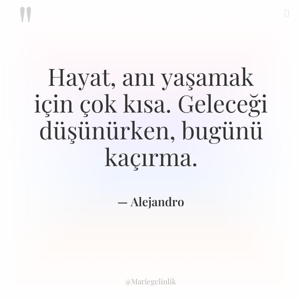 Hayat, anı yaşamak için çok kısa. Geleceği düşünürken, bugünü kaçırma.