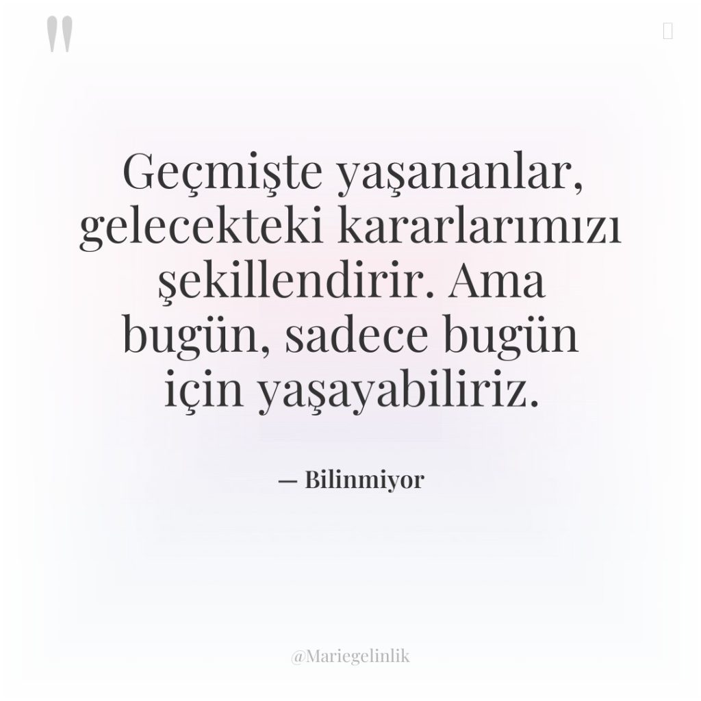 Geçmişte yaşananlar, gelecekteki kararlarımızı şekillendirir. Ama bugün, sadece bugün için…