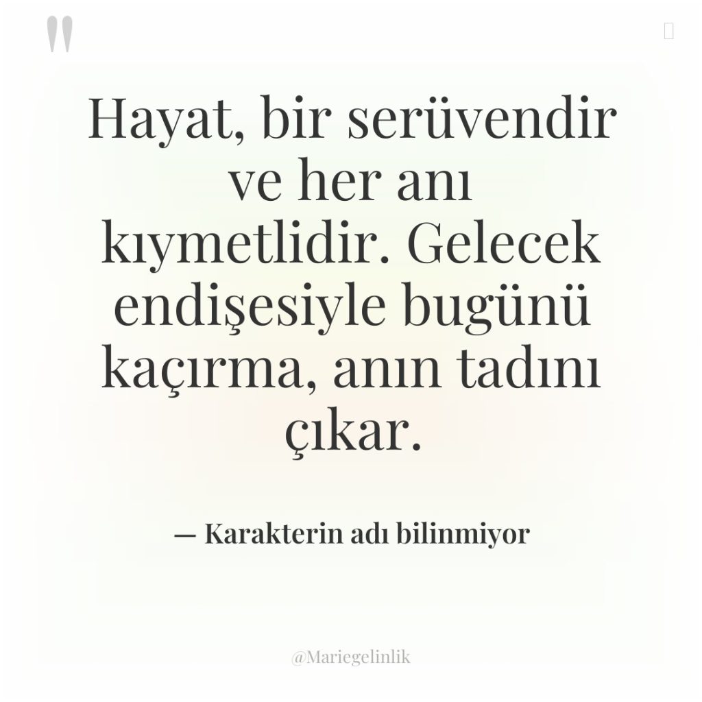 Hayat, bir serüvendir ve her anı kıymetlidir. Gelecek endişesiyle bugünü…