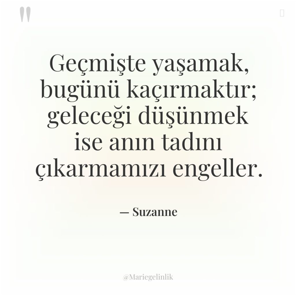 Geçmişte yaşamak, bugünü kaçırmaktır; geleceği düşünmek ise anın tadını çıkarmamızı…