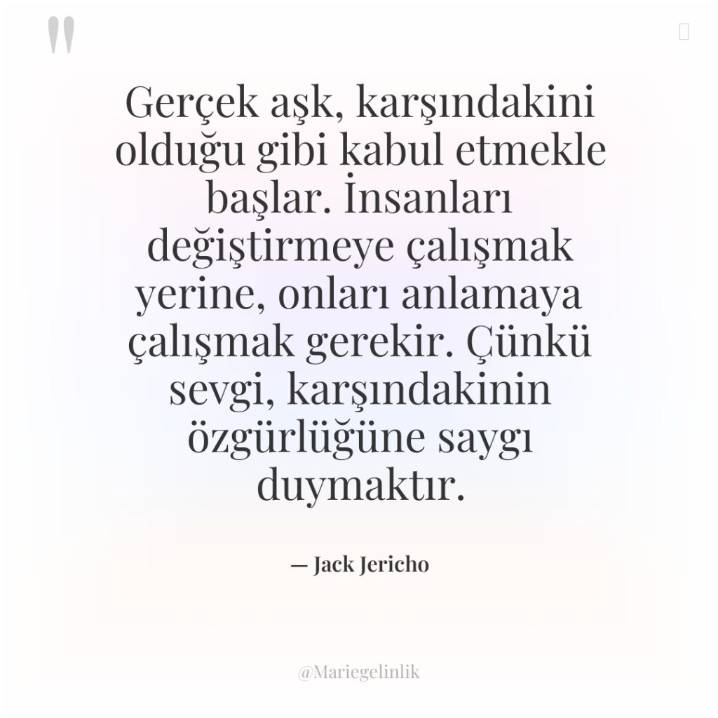 Gerçek aşk, karşındakini olduğu gibi kabul etmekle başlar. İnsanları değiştirmeye…