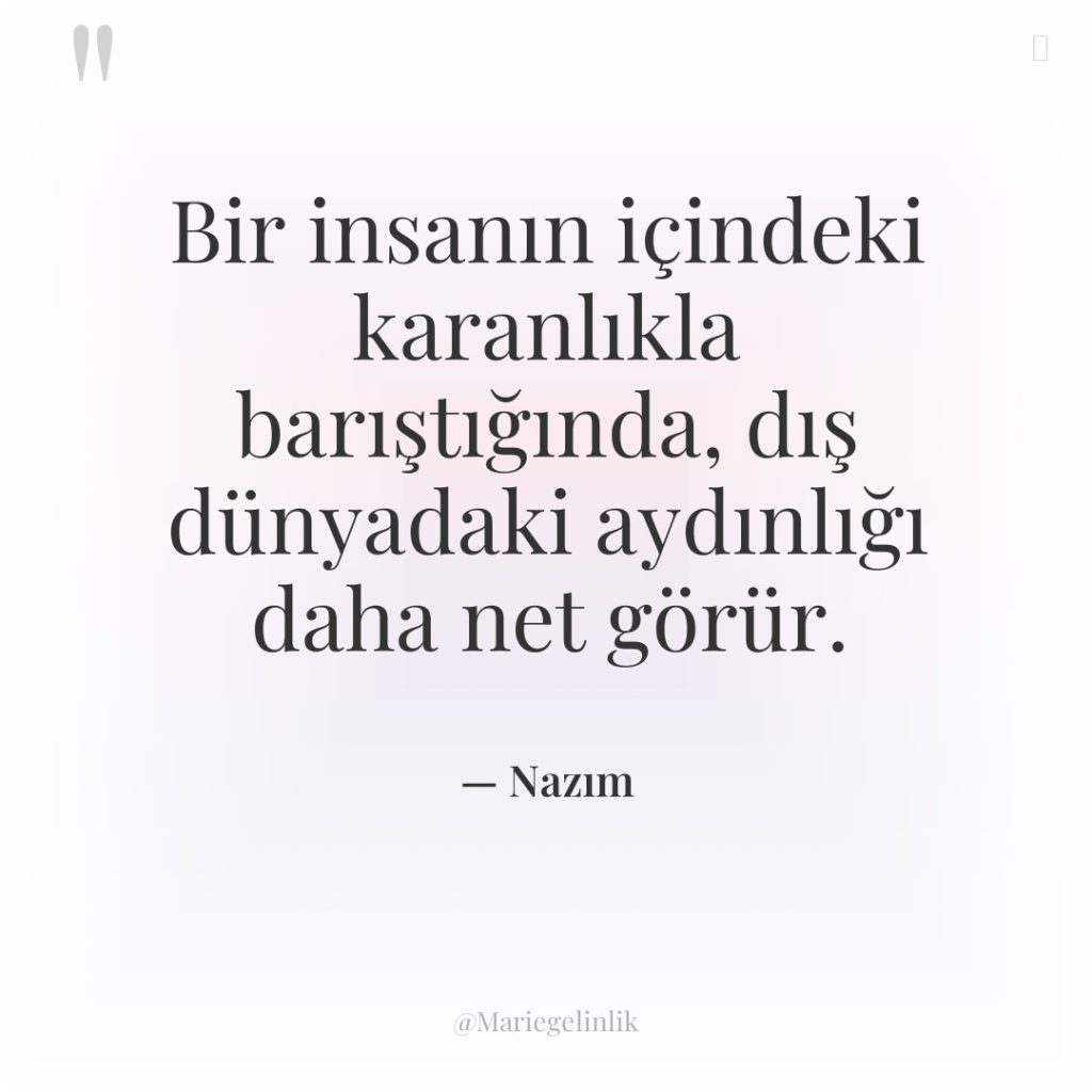 Bir insanın içindeki karanlıkla barıştığında, dış dünyadaki aydınlığı daha net…