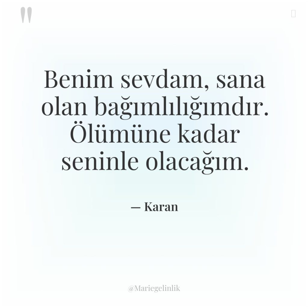 Benim sevdam, sana olan bağımlılığımdır. Ölümüne kadar seninle olacağım.