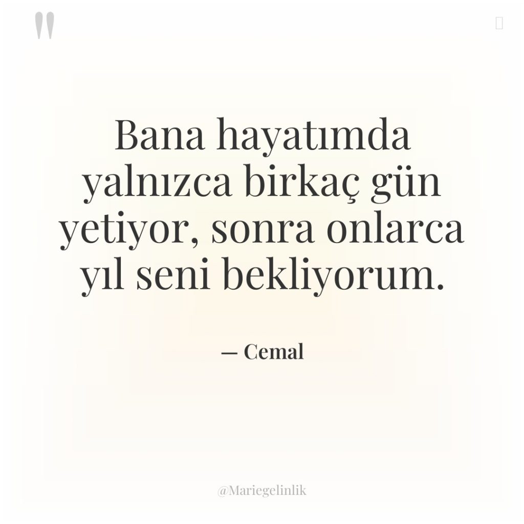 Bana hayatımda yalnızca birkaç gün yetiyor, sonra onlarca yıl seni…