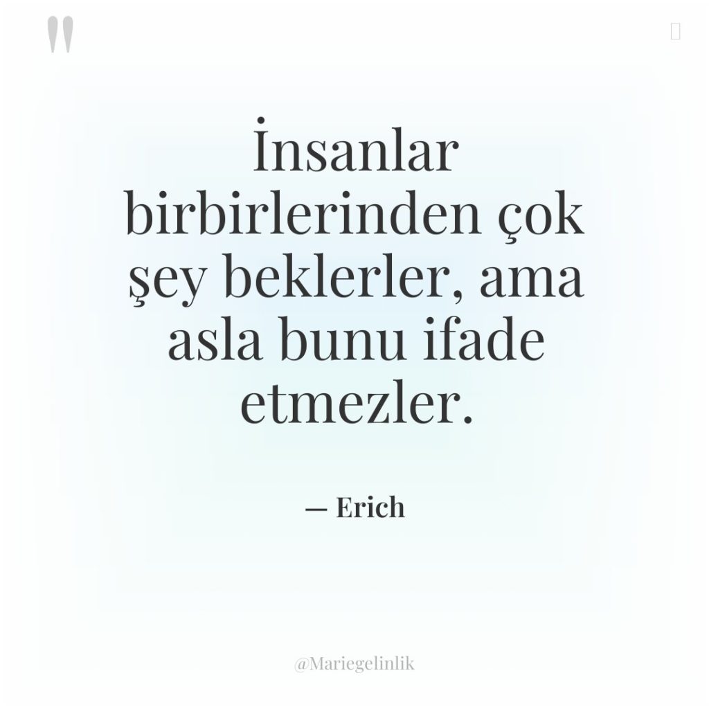 İnsanlar birbirlerinden çok şey beklerler, ama asla bunu ifade etmezler.