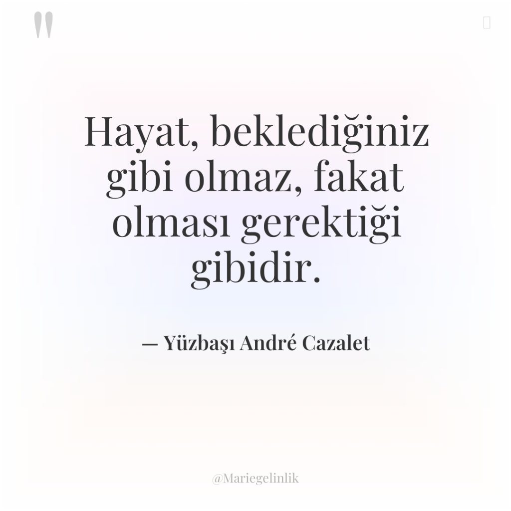 Hayat, beklediğiniz gibi olmaz, fakat olması gerektiği gibidir.