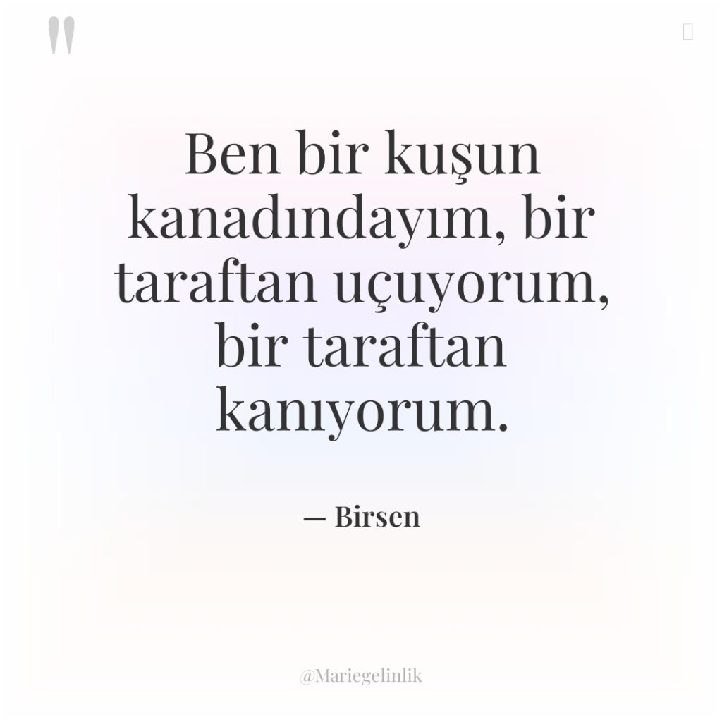 Ben bir kuşun kanadındayım, bir taraftan uçuyorum, bir taraftan kanıyorum.