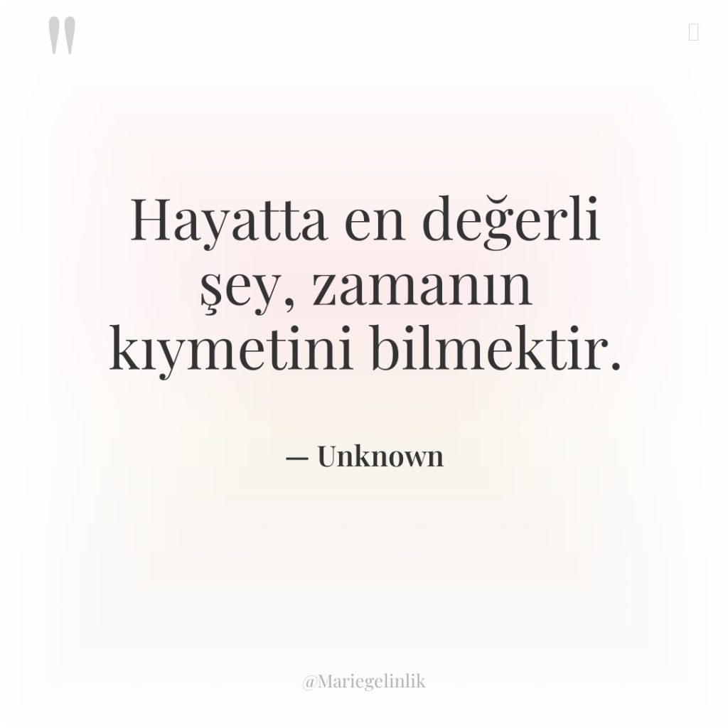 Hayatta en değerli şey, zamanın kıymetini bilmektir.