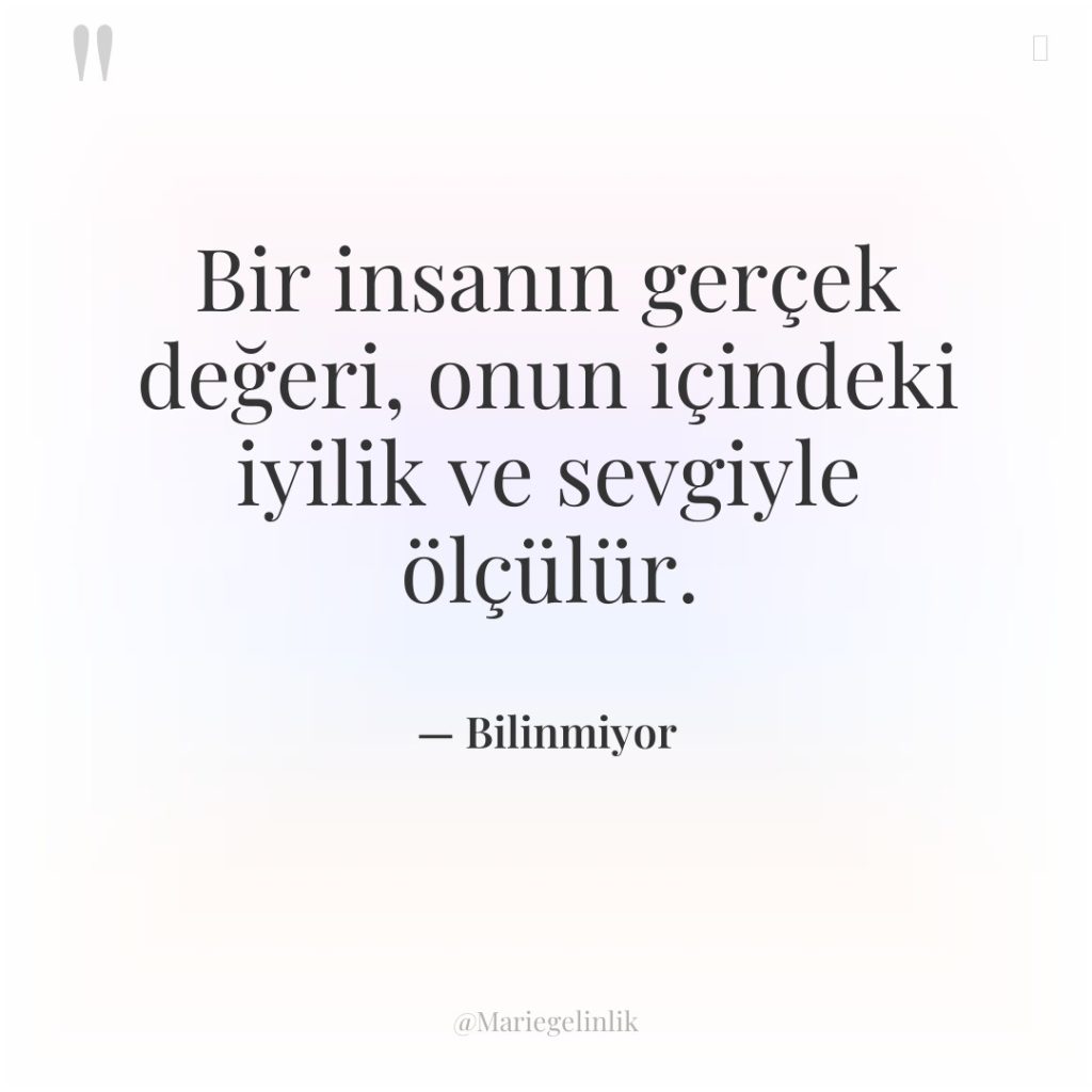 Bir insanın gerçek değeri, onun içindeki iyilik ve sevgiyle ölçülür.