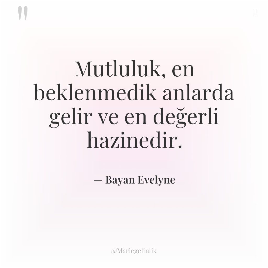 Mutluluk, en beklenmedik anlarda gelir ve en değerli hazinedir.