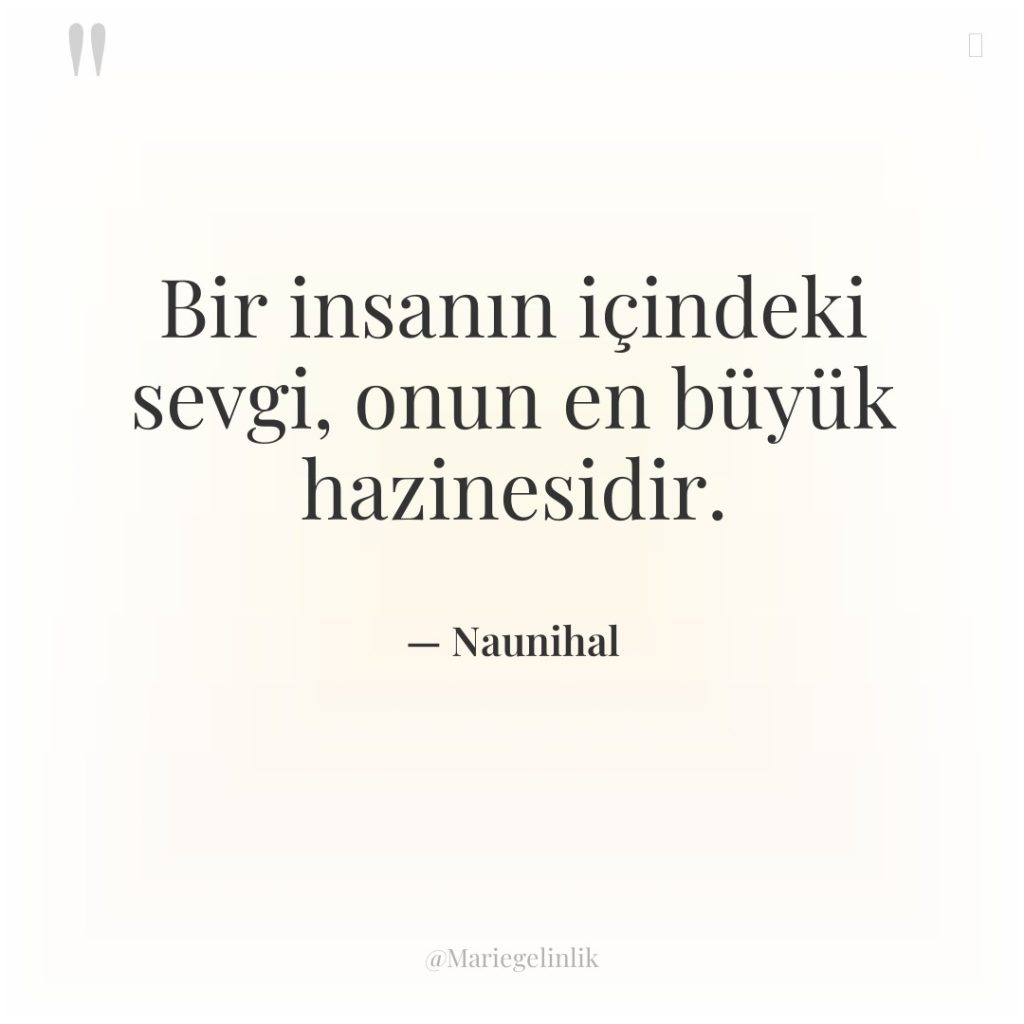 Bir insanın içindeki sevgi, onun en büyük hazinesidir.