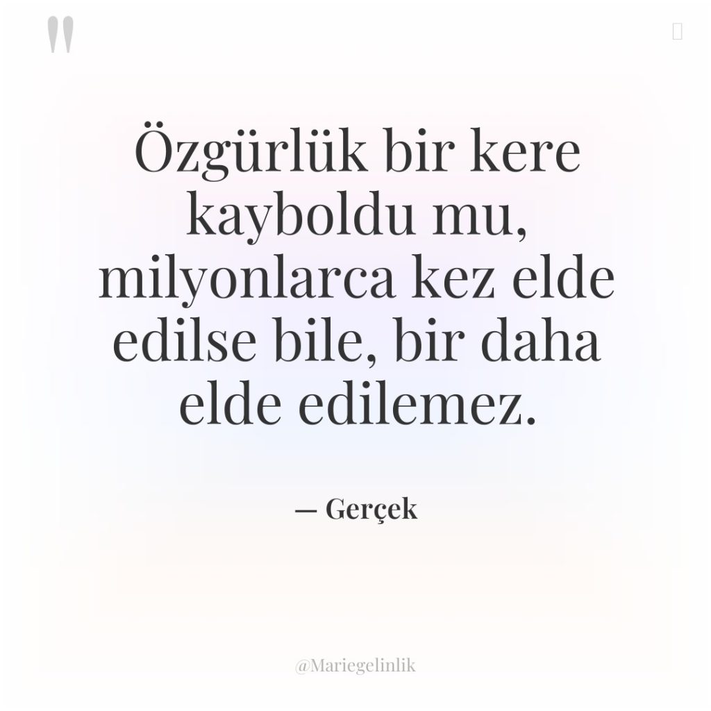 Özgürlük bir kere kayboldu mu, milyonlarca kez elde edilse bile,…