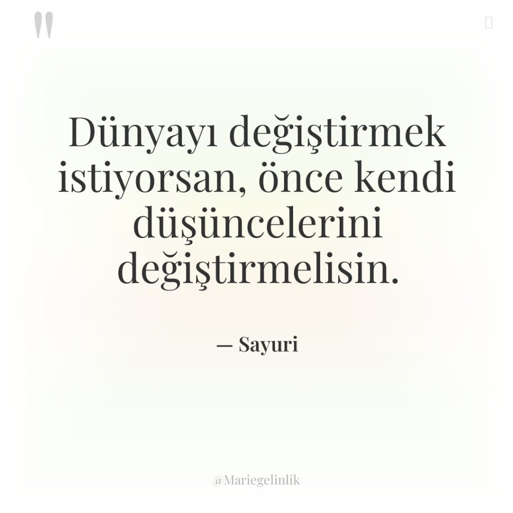 Dünyayı değiştirmek istiyorsan, önce kendi düşüncelerini değiştirmelisin.