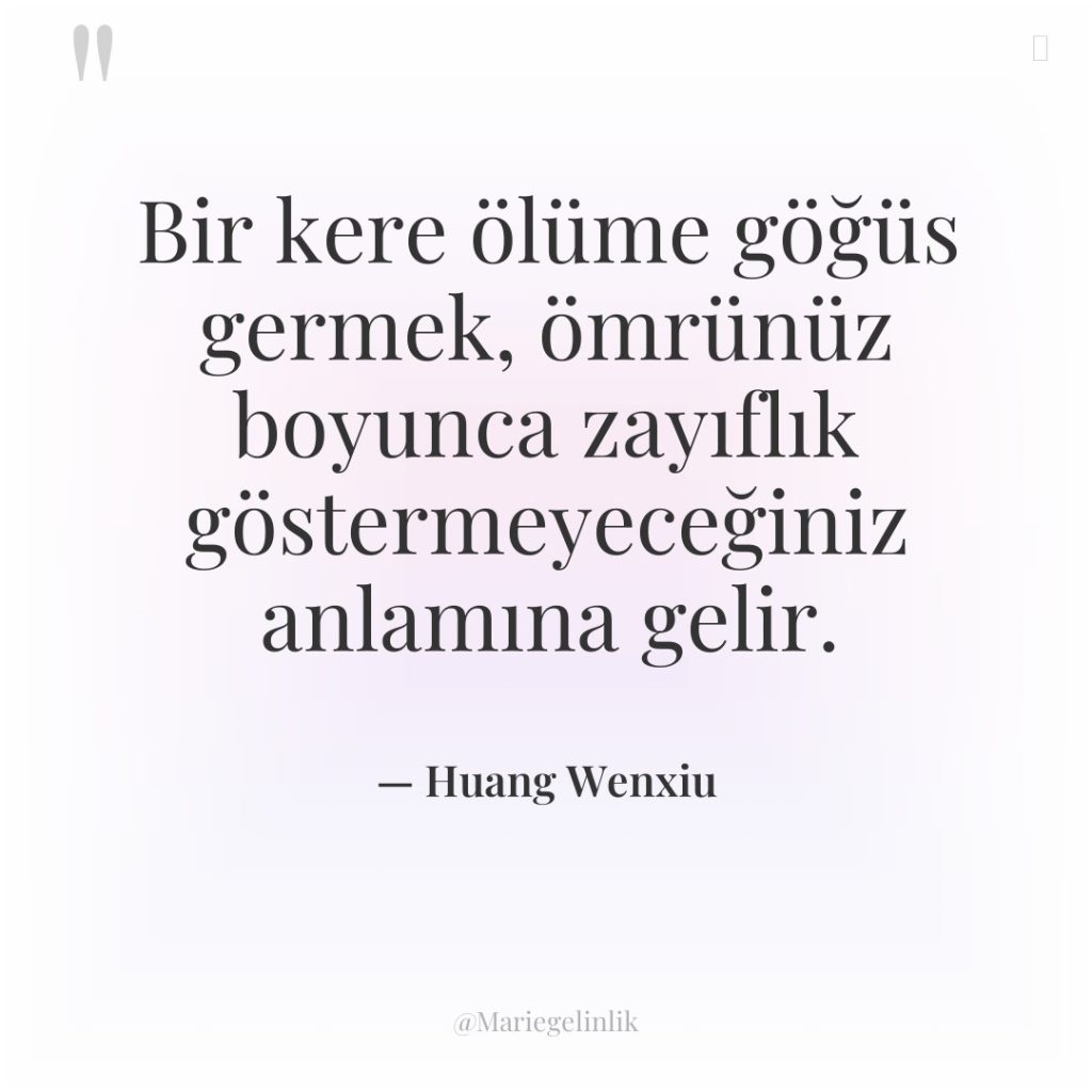 Bir kere ölüme göğüs germek, ömrünüz boyunca zayıflık göstermeyeceğiniz anlamına…