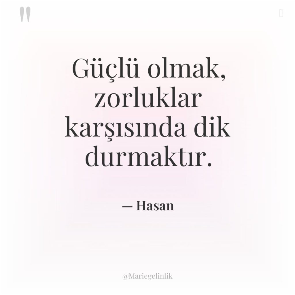 Güçlü olmak, zorluklar karşısında dik durmaktır.