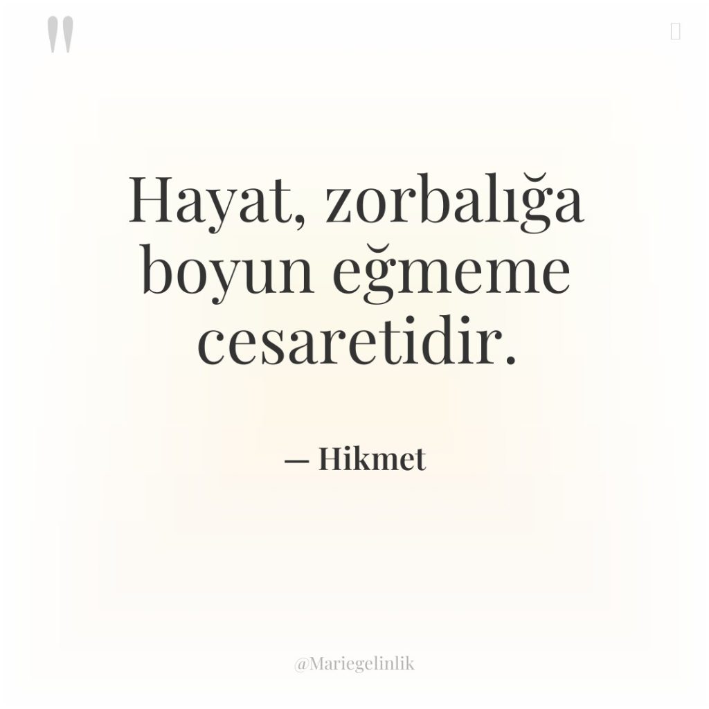 Hayat, zorbalığa boyun eğmeme cesaretidir.