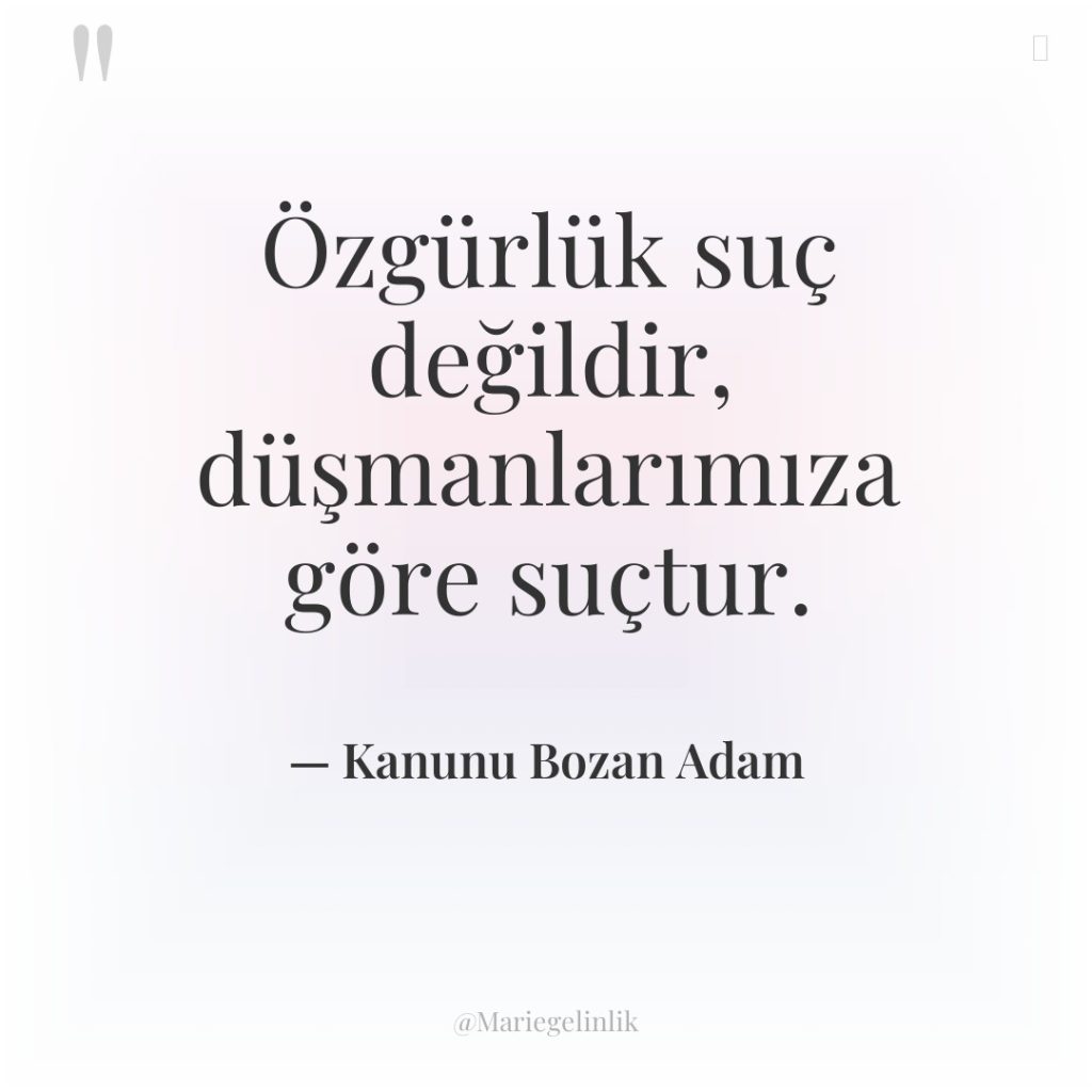 Özgürlük suç değildir, düşmanlarımıza göre suçtur.