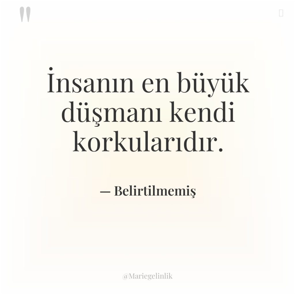 İnsanın en büyük düşmanı kendi korkularıdır.