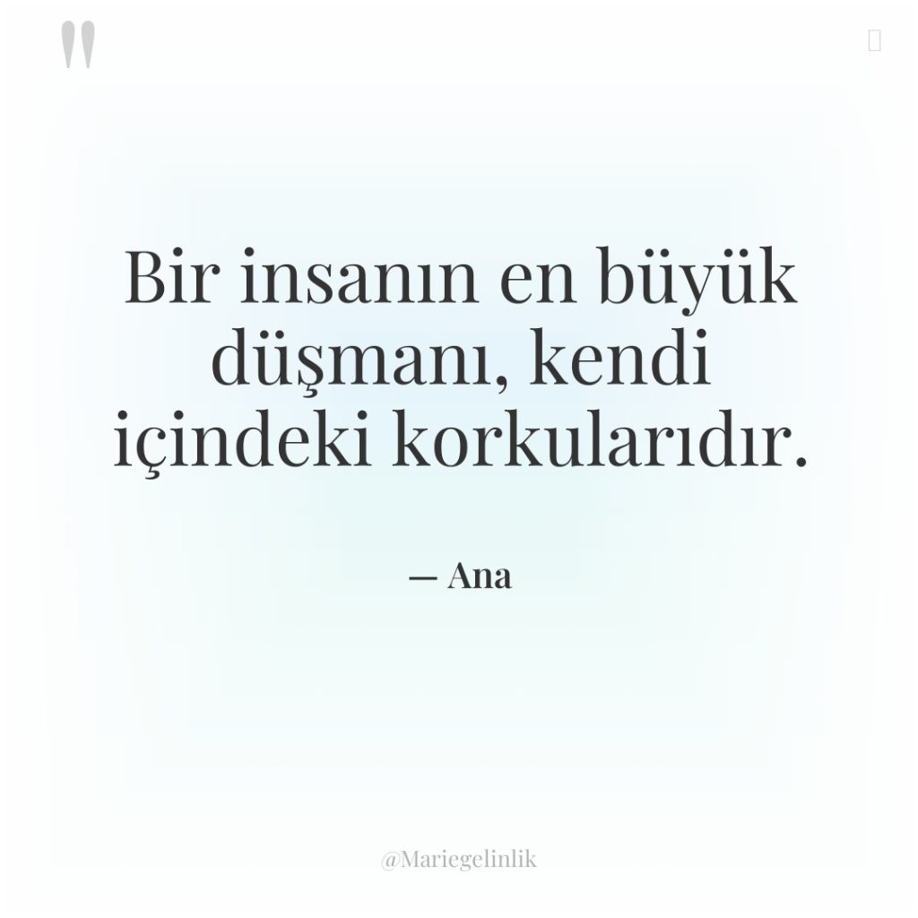 Bir insanın en büyük düşmanı, kendi korkularıdır.
