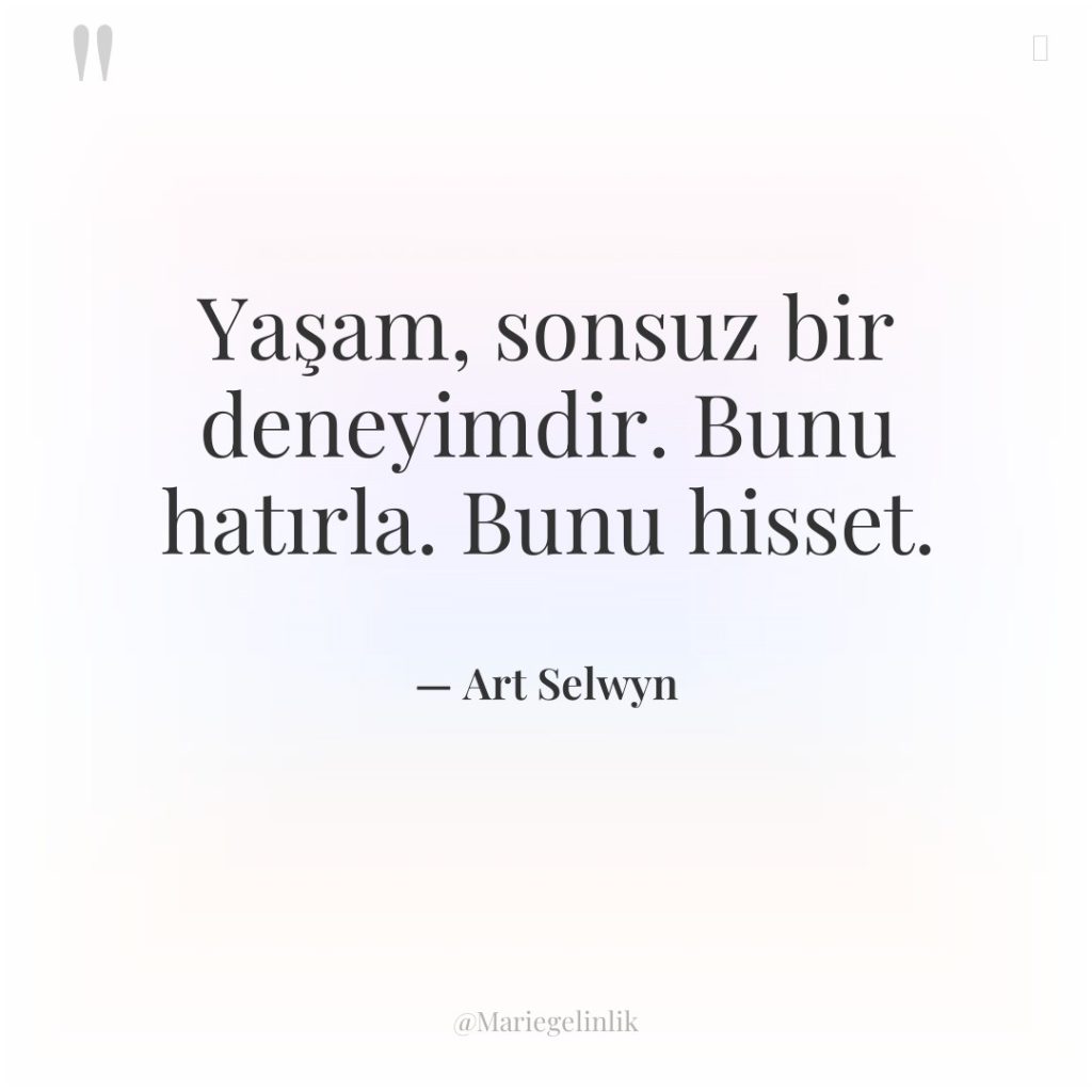 Yaşam, sonsuz bir deneyimdir. Bunu hatırla. Bunu hisset.