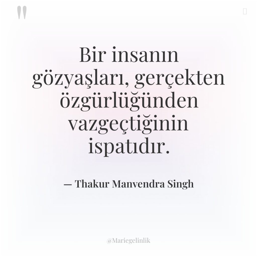 Bir insanın gözyaşları, gerçekten özgürlüğünden vazgeçtiğinin ispatıdır.