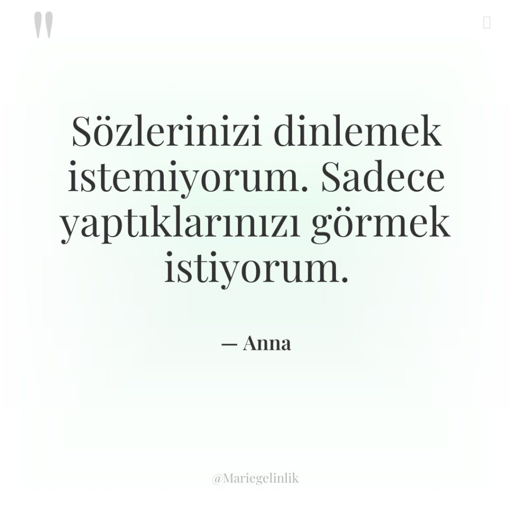 Sözlerinizi dinlemek istemiyorum. Sadece yaptıklarınızı görmek istiyorum.