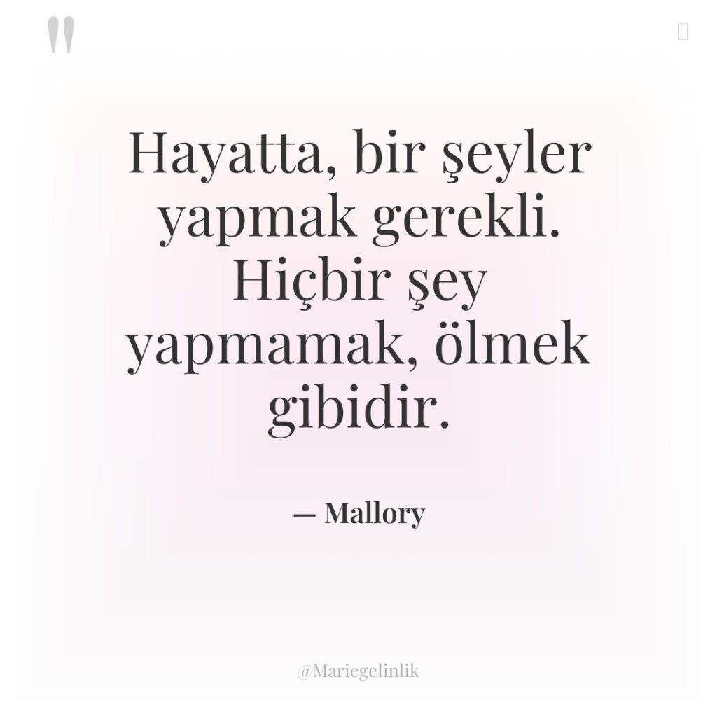 Hayatta, bir şeyler yapmak gerekli. Hiçbir şey yapmamak, ölmek gibidir.