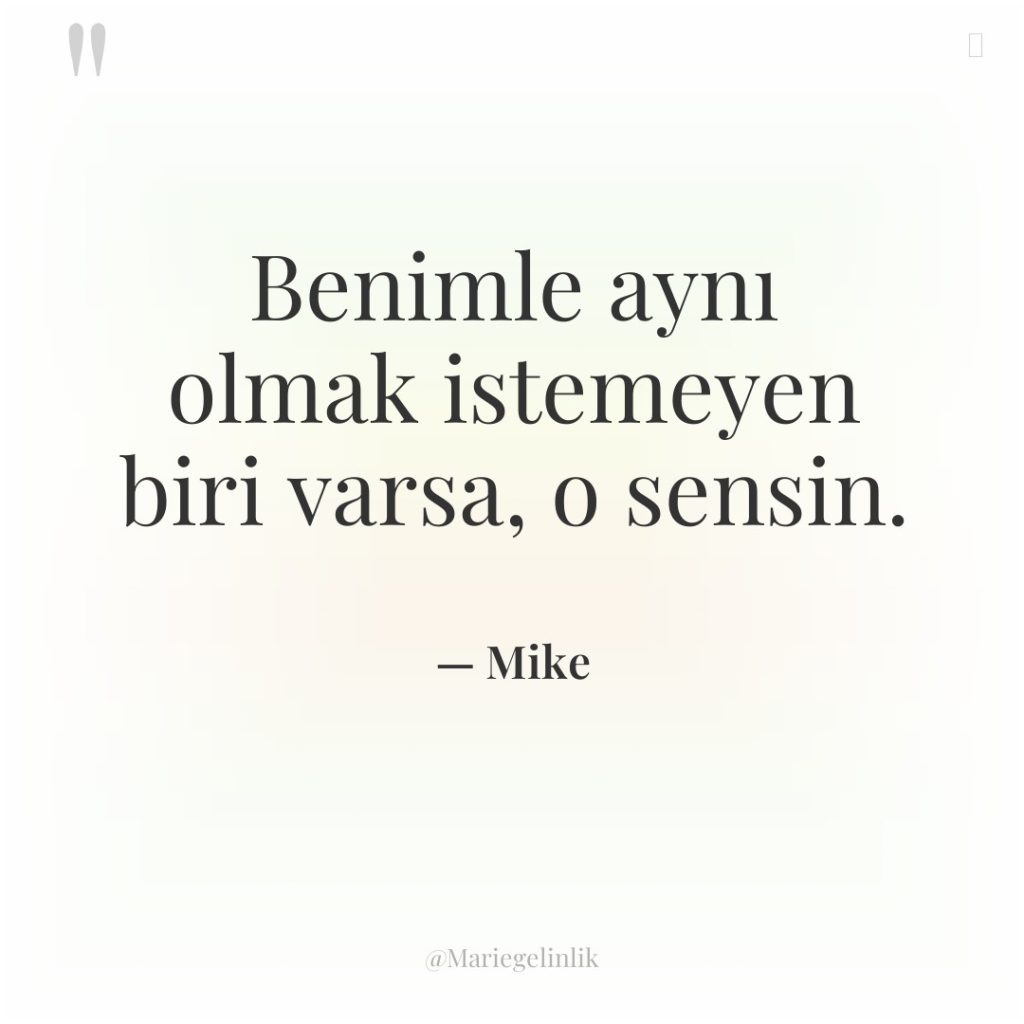 Benimle aynı olmak istemeyen biri varsa, o sensin.
