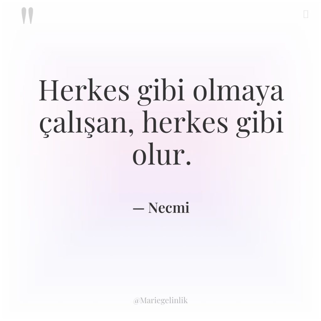Herkes gibi olmaya çalışan, herkes gibi olur.