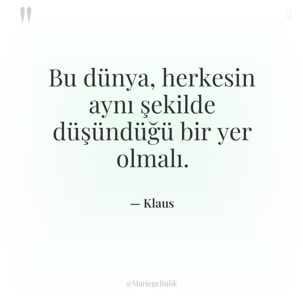 Bu dünya, herkesin aynı şekilde düşündüğü bir yer olmalı.