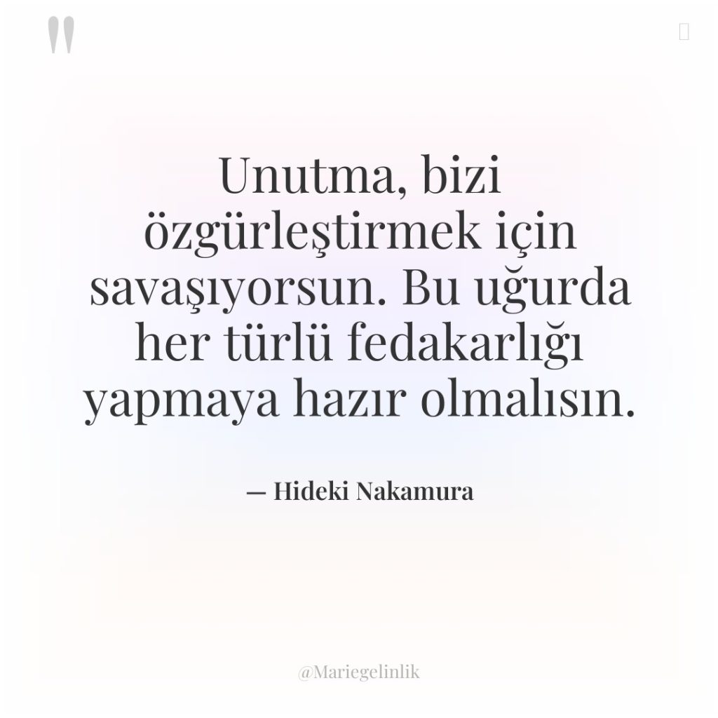 Unutma, bizi özgürleştirmek için savaşıyorsun. Bu uğurda her türlü fedakarlığı…