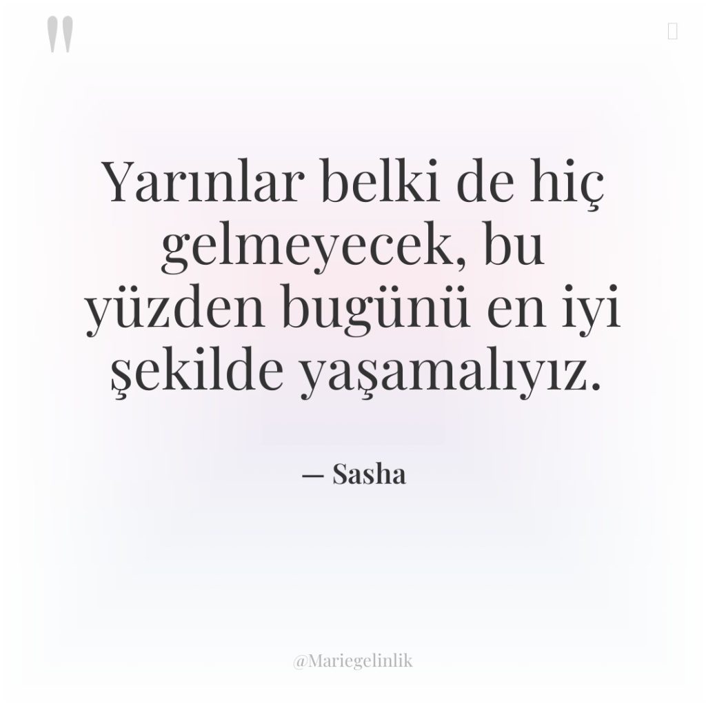Yarınlar belki de hiç gelmeyecek, bu yüzden bugünü en iyi…