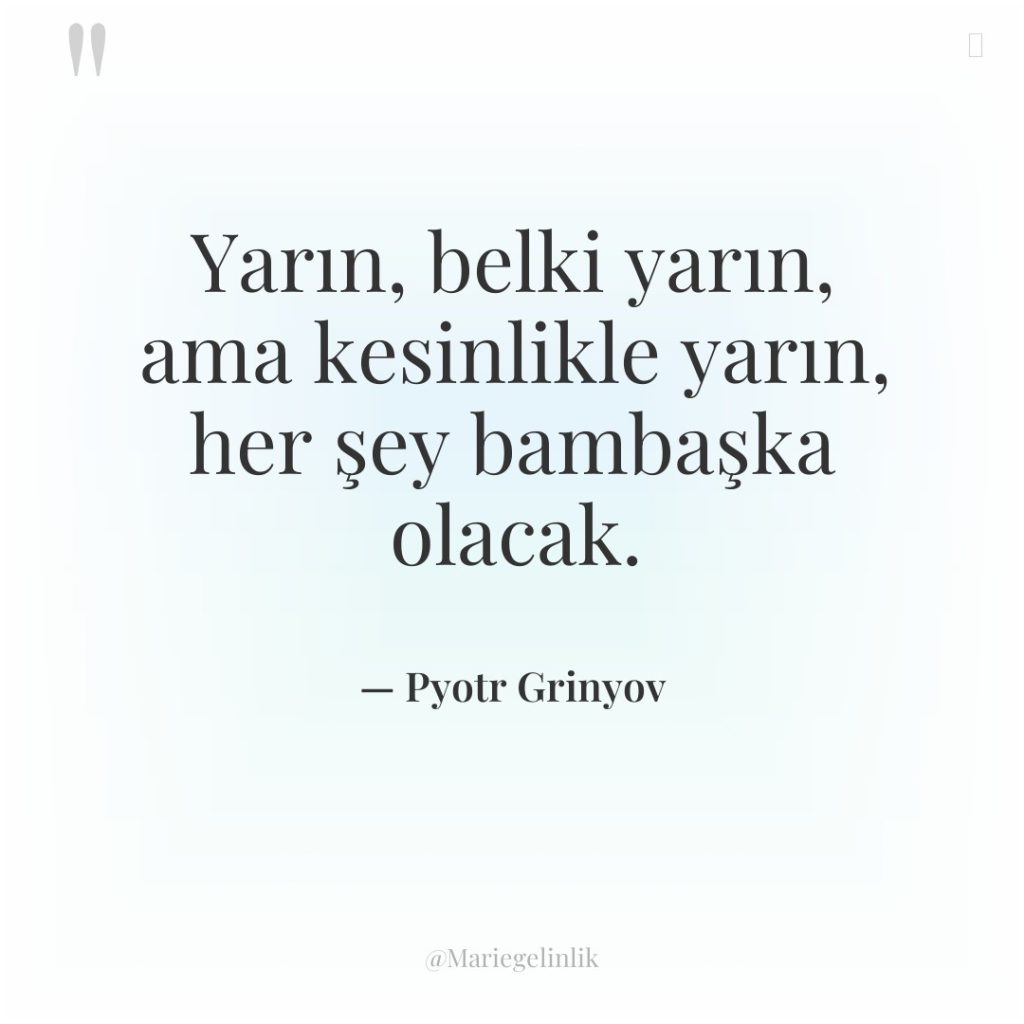 Yarın, belki yarın, ama kesinlikle yarın, her şey bambaşka olacak.