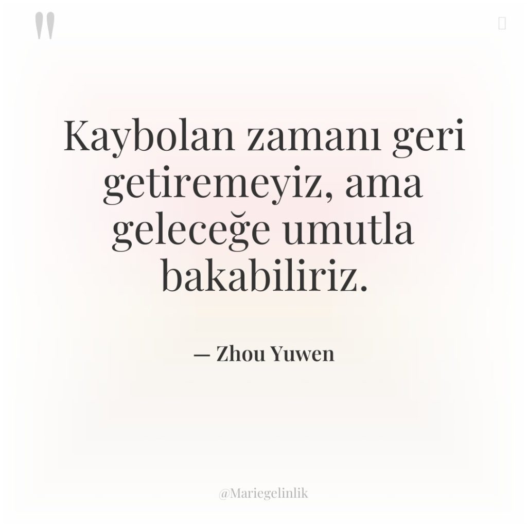 Kaybolan zamanı geri getiremeyiz, ama geleceğe umutla bakabiliriz.