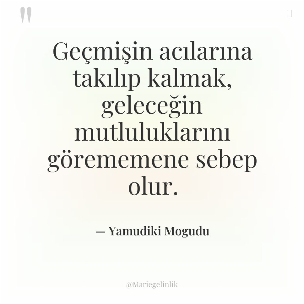 Geçmişin acılarına takılıp kalmak, geleceğin mutluluklarını görememene sebep olur.