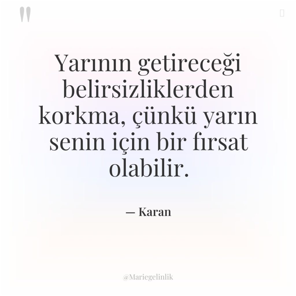 Yarının getireceği belirsizliklerden korkma, çünkü yarın senin için bir fırsat…