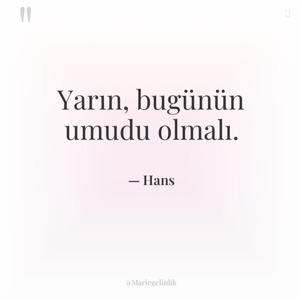 Yarın, bugünün umudu olmalı.
