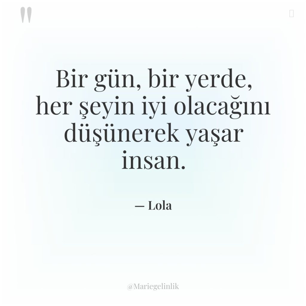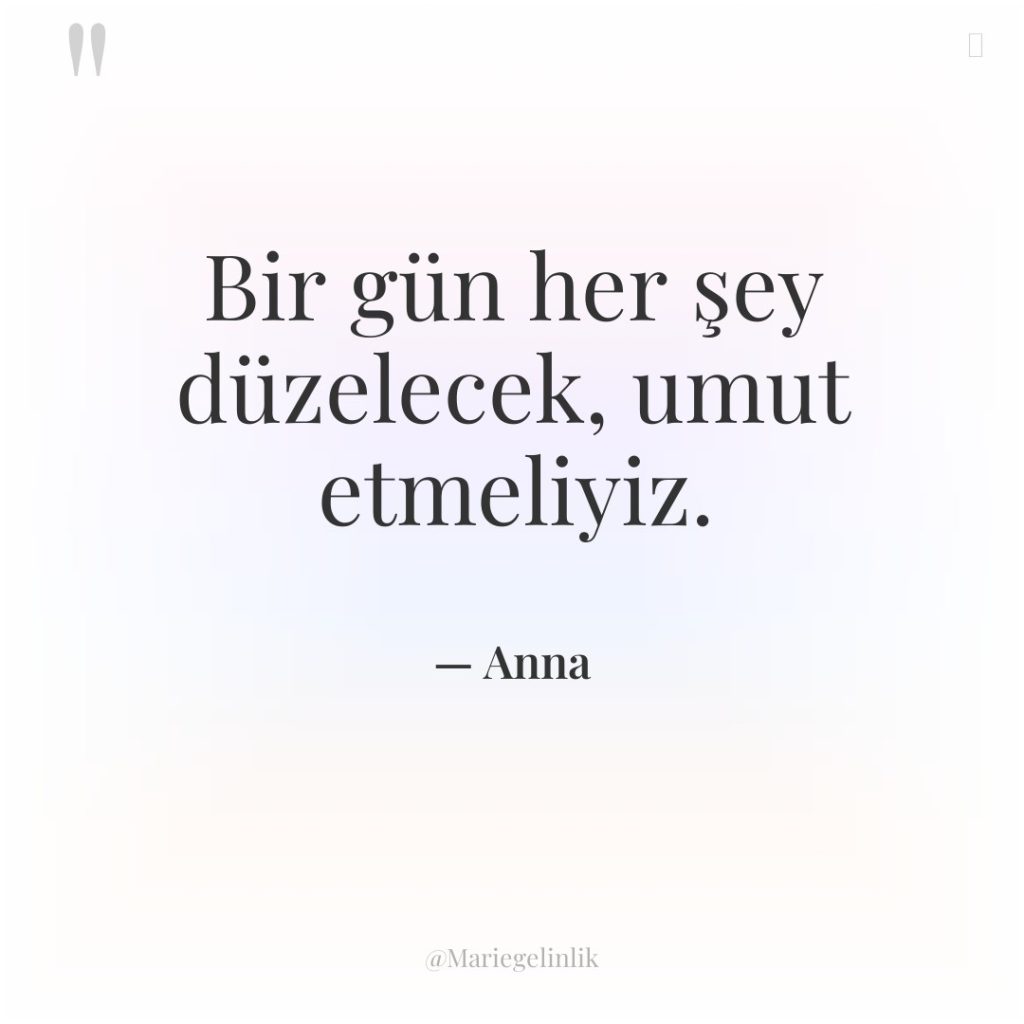 Bir gün her şey düzelecek, umut etmeliyiz.