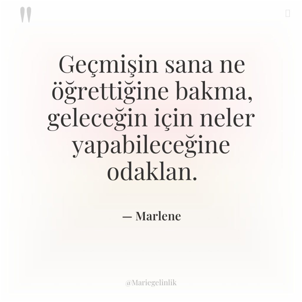 Geçmişin sana ne öğrettiğine bakma, geleceğin için neler yapabileceğine odaklan.