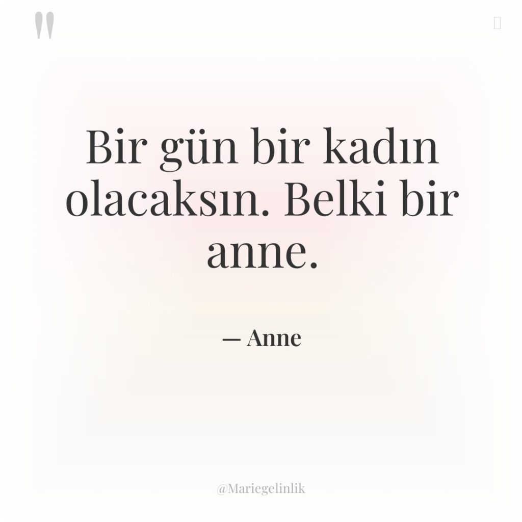 Bir gün bir kadın olacaksın. Belki bir anne.