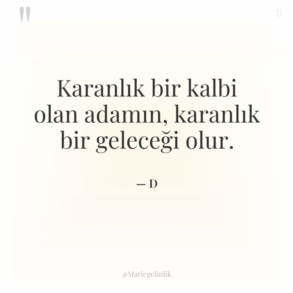 Karanlık bir kalbi olan adamın, karanlık bir geleceği olur.