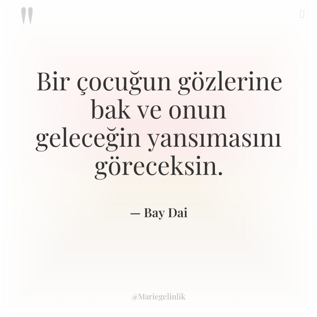Bir çocuğun gözlerine bak ve onun geleceğin yansımasını göreceksin.