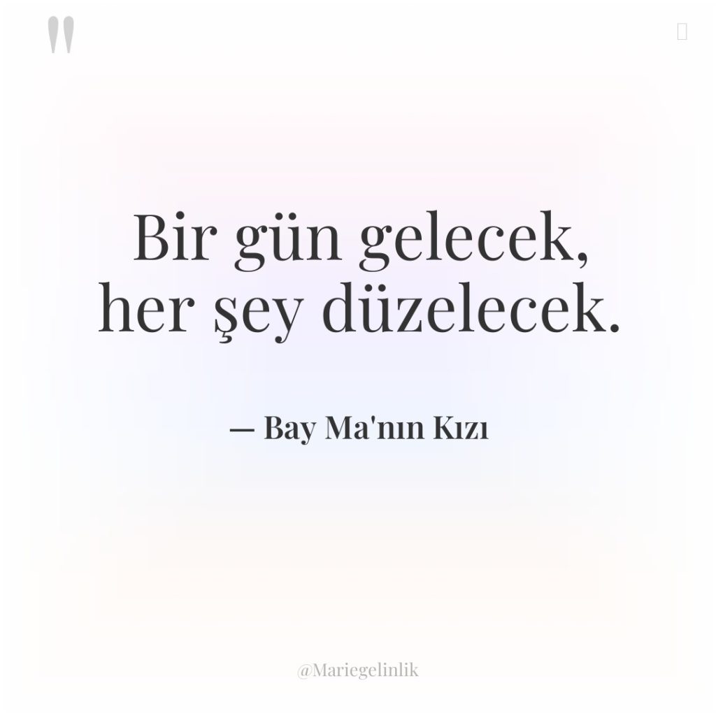 Bir gün gelecek, her şey düzelecek.