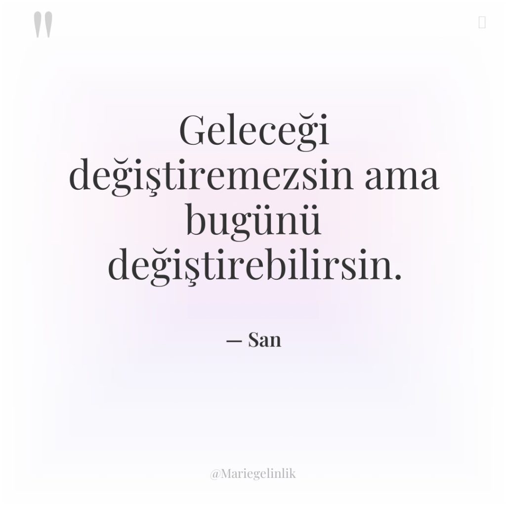 Geleceği değiştiremezsin ama bugünü değiştirebilirsin.