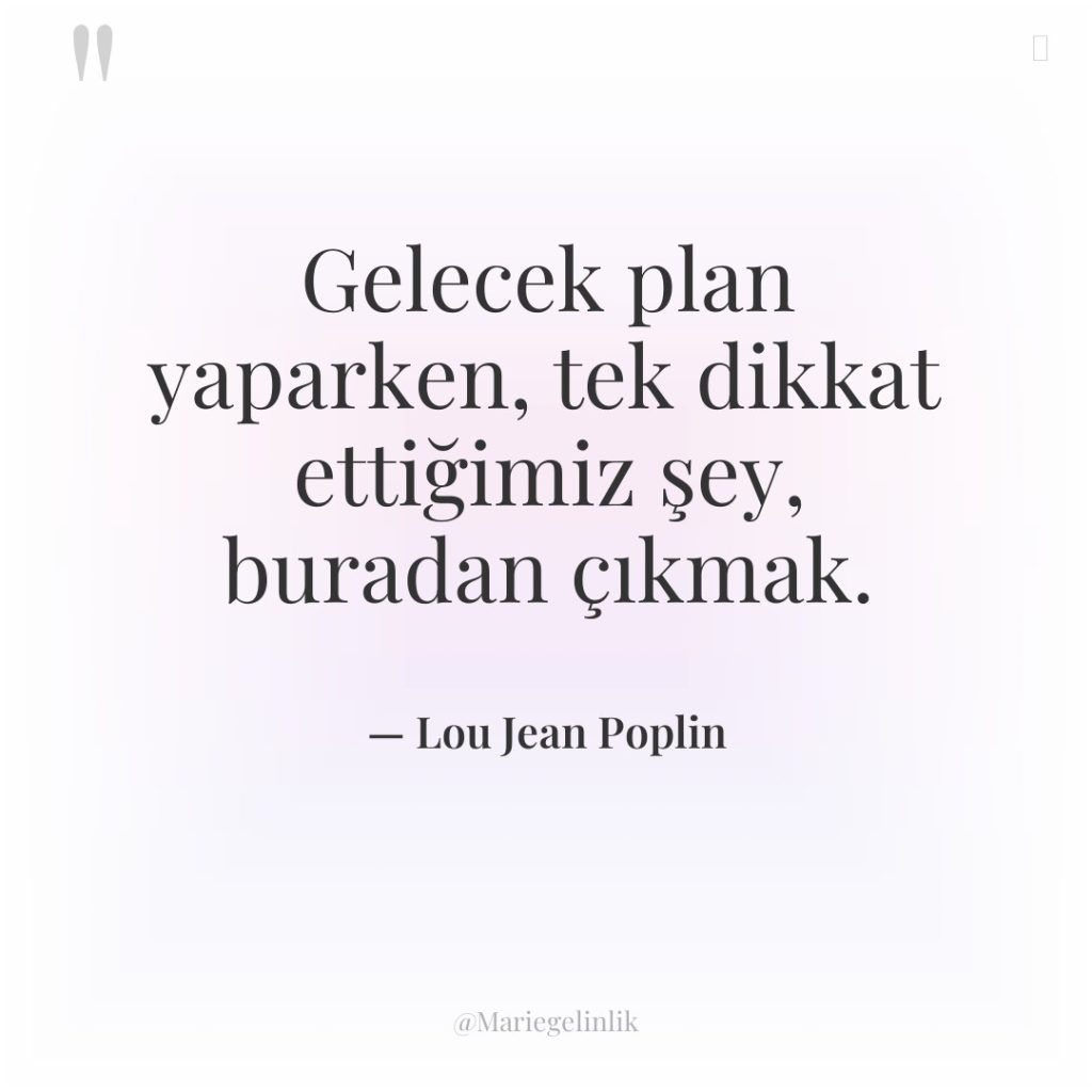 Gelecek plan yaparken, tek dikkat ettiğimiz şey, buradan çıkmak.