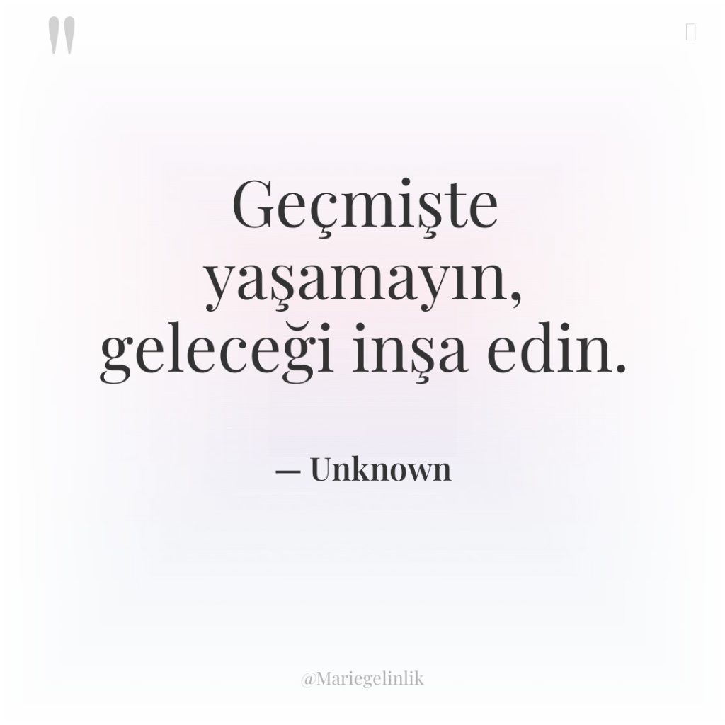Geçmişte yaşamayın, geleceği inşa edin.
