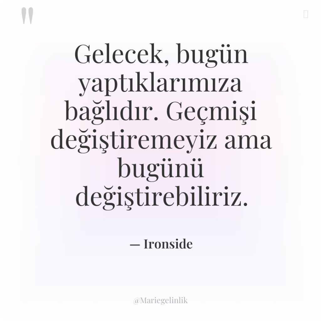 Gelecek, bugün yaptıklarımıza bağlıdır. Geçmişi değiştiremeyiz ama bugünü değiştirebiliriz.