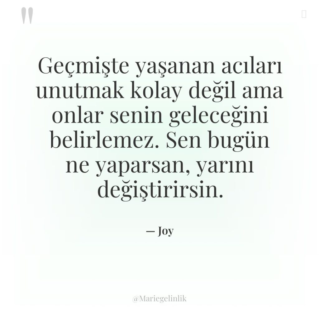 Geçmişte yaşanan acıları unutmak kolay değil ama onlar senin geleceğini…