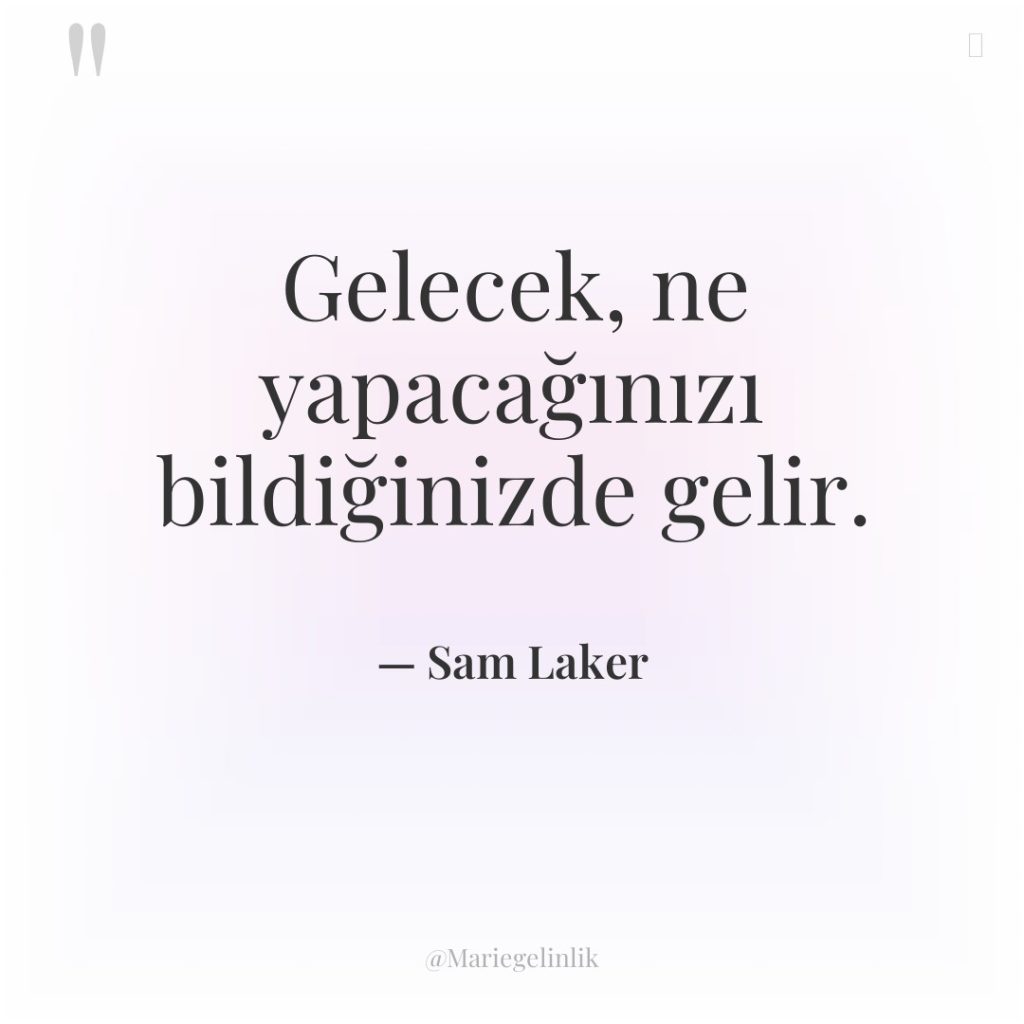 Gelecek, ne yapacağınızı bildiğinizde gelir.