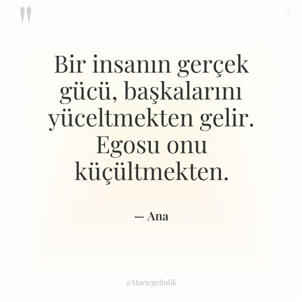Bir insanın gerçek gücü, başkalarını yüceltmekten gelir. Egosu onu küçültmekten.